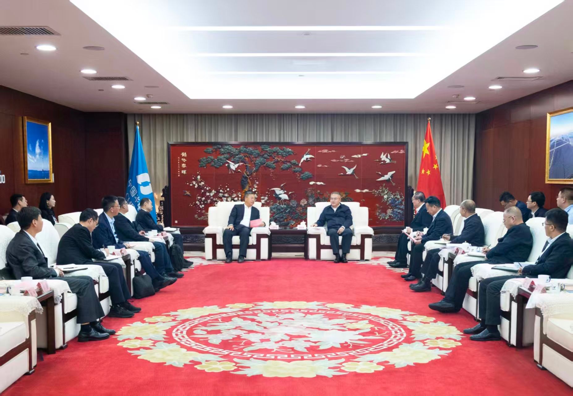 • 10月31日,中國華能集團有限公司董事長、黨組書記溫樞剛在集團公司總部會見國家開發銀行黨委副書記、行長譚炯。集團公司總會計師、黨組成員李櫻,國家開發銀行黨委委員、副行長謝泰峰參加會見。 溫樞剛對譚炯一行的到來表示歡迎,對國家開發銀行多年來給予中國華能的支持表示感謝,并介紹了公司經營發展、業務布局等有關情況。他表示,中國華能與國家開發銀行有著良好合作基礎,希望雙方進一步鞏固和拓展合作空間,加強多領域、各層級交流溝通,進一步深化在創新性業務、國際業務等領域的合作,加強“十五五”規劃對接